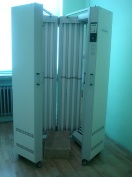 优越性:疗程短、疗效快,总有效率达90%以上;不需要服用其它辅助药物,避免了使用光敏药物带来的副作用;有效光输出强度大,无光毒副作用,有良好的安全性和耐受性,对于正常的皮肤没有显著的影响,避免了传统宽谱UVB可能导致的皮肤烧伤及致癌的机率。适应症:银屑病、白癜风、慢性湿疹、异位性皮炎、带状疱疹、玫瑰糠疹、严重脂溢性皮炎、丹毒、掌跖脓疱病、斑秃、副银屑病、皮肤慢性溃疡、蕈样肉芽肿、各种光照性疾病等。银屑病治疗疗程临床实践表明311nmUVB的疗效优于宽谱UVB,红斑反应发生率低,使疾病缓解时间长,疗效类似于PUVA,但不需服药,费用低,可用于孕妇及儿童,致癌性小等。隔天照射一次,15-20次为一个疗程。欧美等国临床效果表明,总有效率达95%以上。白癜风治疗疗程采用窄谱UVB(311nm)照射,激活酪氨酸酶活性,促进黑色素形成。每周2-3次,需坚持治疗30-50次,甚至更多次的治疗。特别是对于面部皮疹有很好疗效。对于躯干和四肢皮疹,疗效较差,可能需要更长的疗程。欧美等国临床效果表明,总有效率达80%以上。