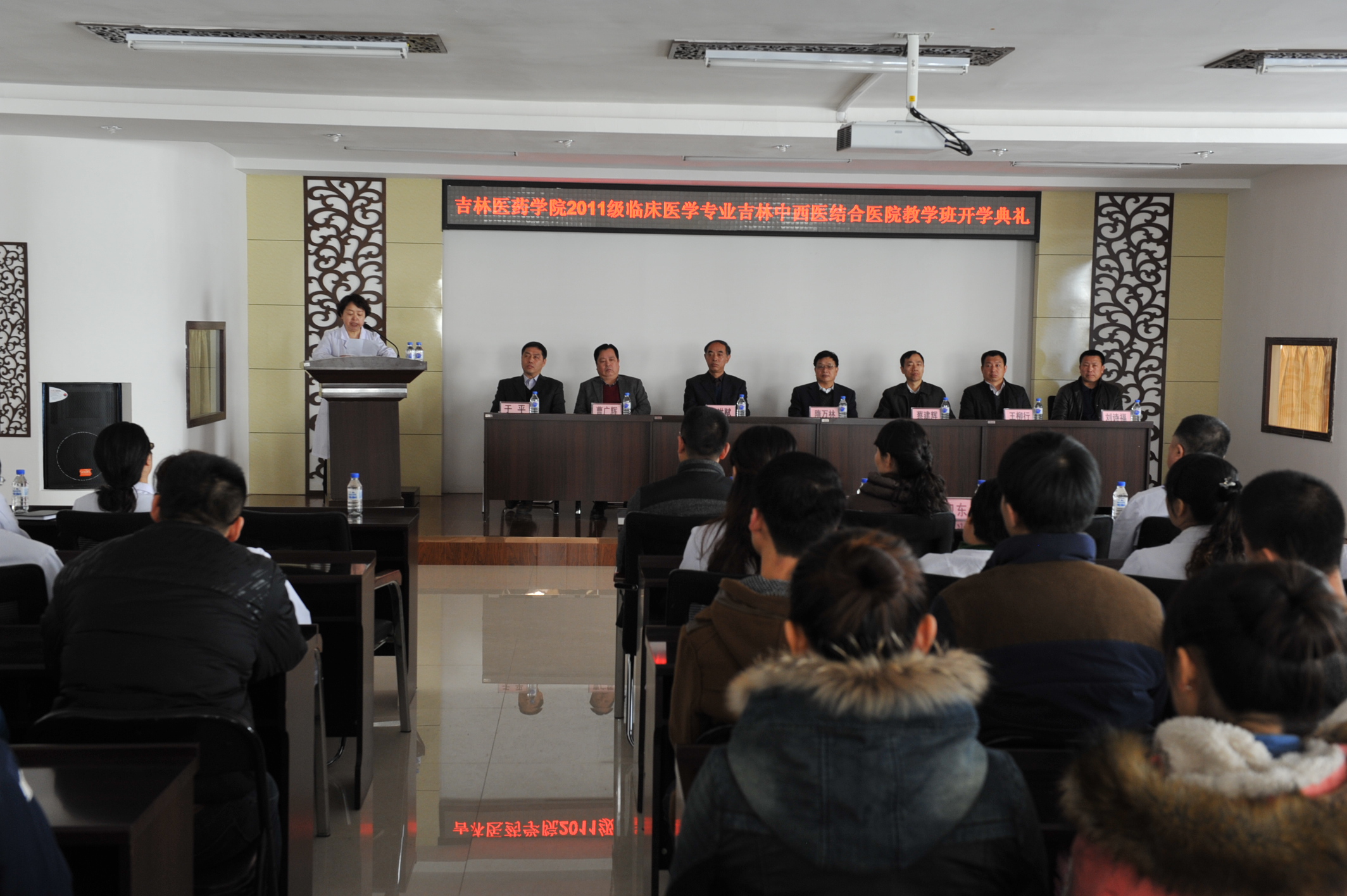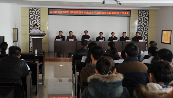 3月3日吉林医药学院2011级临床医学专业教学吉林中西医结合医院教学班开学典礼在我院隆重举行。异地小班教学是临床医学教学的一种全新尝试,旨在通过教学班全新的教学理念,让学生在学习过程中将书本上的理论知识运用到实际当中,学习知识与施展能力对接,总结经验教训,进一步提升自己,为以后的工作打下良好的基础,为走上社会奠定基础。