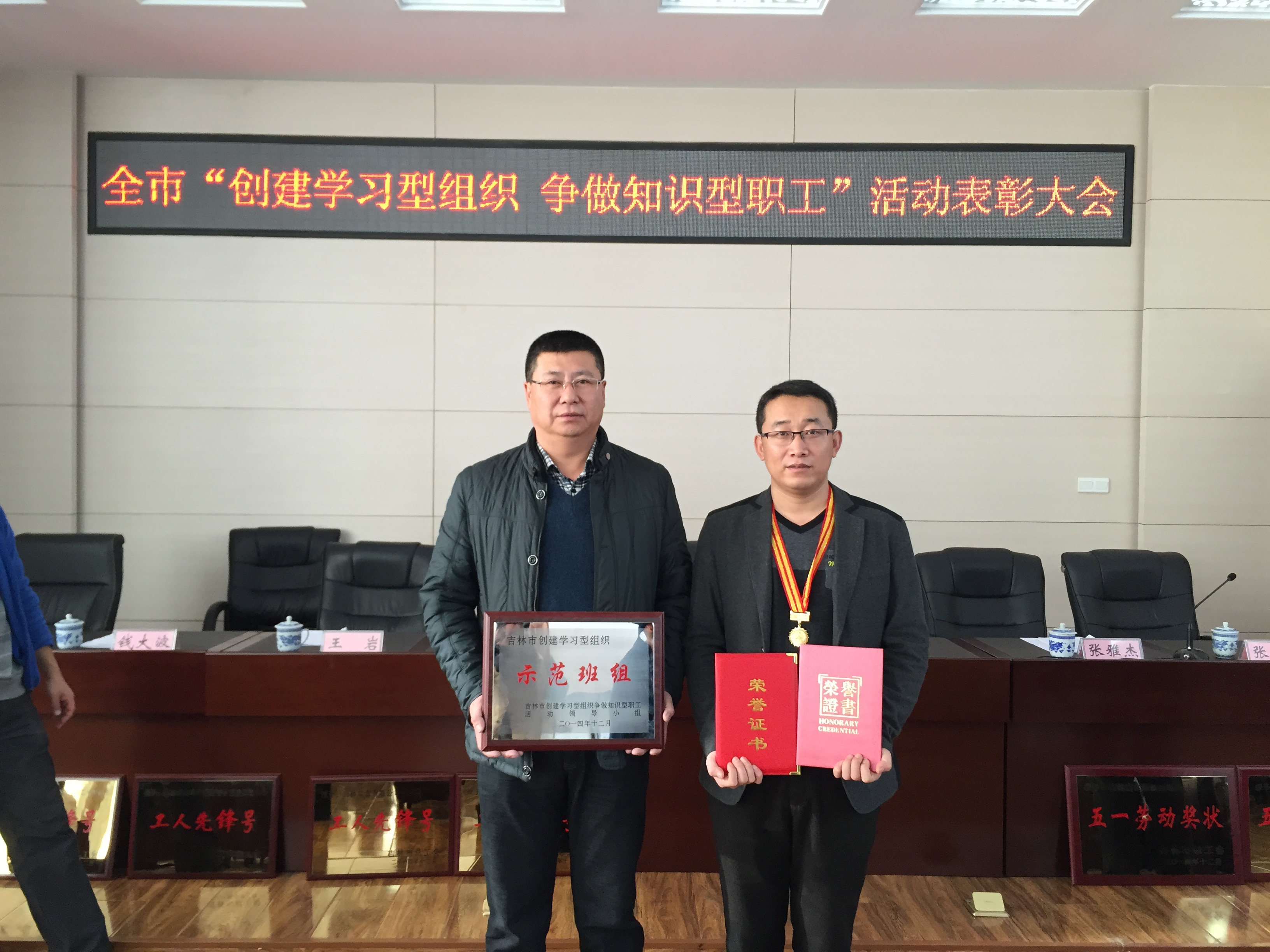 热烈祝贺体检中心获得“吉林市创建学习型组织示范班组”、“吉林市工人先锋号”荣誉称号;郑志明同志获得“吉林市知识型职工标兵”、“吉林市五一劳动奖章”荣誉称号!