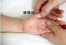 宝宝感冒好后经常伴有很长时间咳嗽,宝宝服用止咳药有风险,家长不妨试试小儿推拿止咳法,按照图片示意的手法,一天进行两三次,会有不错的效果:顺运内八卦100次、清肺经200次、清肝经200次、清胃经200次、推天河水100次。