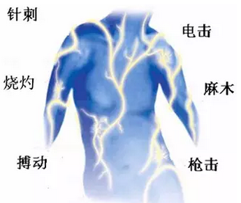 沿受累神经分布的疼痛感是带状疱疹后遗神经痛的主要特征,表现为局部阵发性或持续性的灼痛、刺痛、跳痛、刀割痛,可伴有麻木、感觉过敏、感觉异常如蚁走感,严重者影响了休息、睡眠、精神状态等,这是由于带状疱疹病毒的亲神经性侵袭神经末梢造成的,继续发展上行侵犯脊髓背根神经节,造成疼痛信号放大数倍甚至数十倍。一些病人由于剧烈疼痛连衣服都不敢触碰,这就是痛觉过敏现象产生。