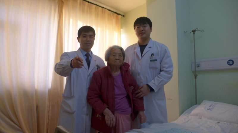 2015年12月16日,我院微创骨科收治了一名从外院转来的特殊患者,韩福祥,女,95岁。4天前老人在家中走步不慎跌倒,导致右股骨颈骨折。患者家属得知如果采取卧床保守治疗,患者极有可能数月内将面临因各种并发症导致的死亡,家属走访了市内几家三级医院骨科,由于患者高龄,都以手术风险大而将家属委婉拒绝了。患者家属抱着最后一线希望来到了我科。这位老奶奶慈眉善目,拥有3子1女,都非常孝顺,轮班护理,都向我们询问病情,期待老人能早日康复。向任杰主任多次请求,无论如何要将老母亲治好,老母亲含辛茹苦将我们养大,不能让她在床上度过余生,希望能早点站起来。只要母亲在我们就有家的感觉,生活才有奔头,看到子女们如此孝顺,我们深受感动。老奶奶同时患有冠心病、高血压、慢性左心衰、心律失常、慢性阻塞性肺疾病、II型呼吸衰竭、2型糖尿病等多种内科疾病。入院后多次请心血管科、重症医学科、肺病科、内分泌科等多科室联合会诊,积极用药调整,经过一周时间紧锣密鼓的充分准备,将患者身体条件调整至了相对最佳状态。在患者家属强烈要求手术的基础之上,向家属全面分析并告知了各种手术风险及术后可能出现的并发症,最后通过麻醉科主任与任杰主任及张志宏主任医师全面评估手术风险后,制定了周密的手术计划及充分的术前准备,于12月24日成功的完成了我院首例95岁及以上超高龄人工股骨头置换术,填补了我院外科历史又一项空白。