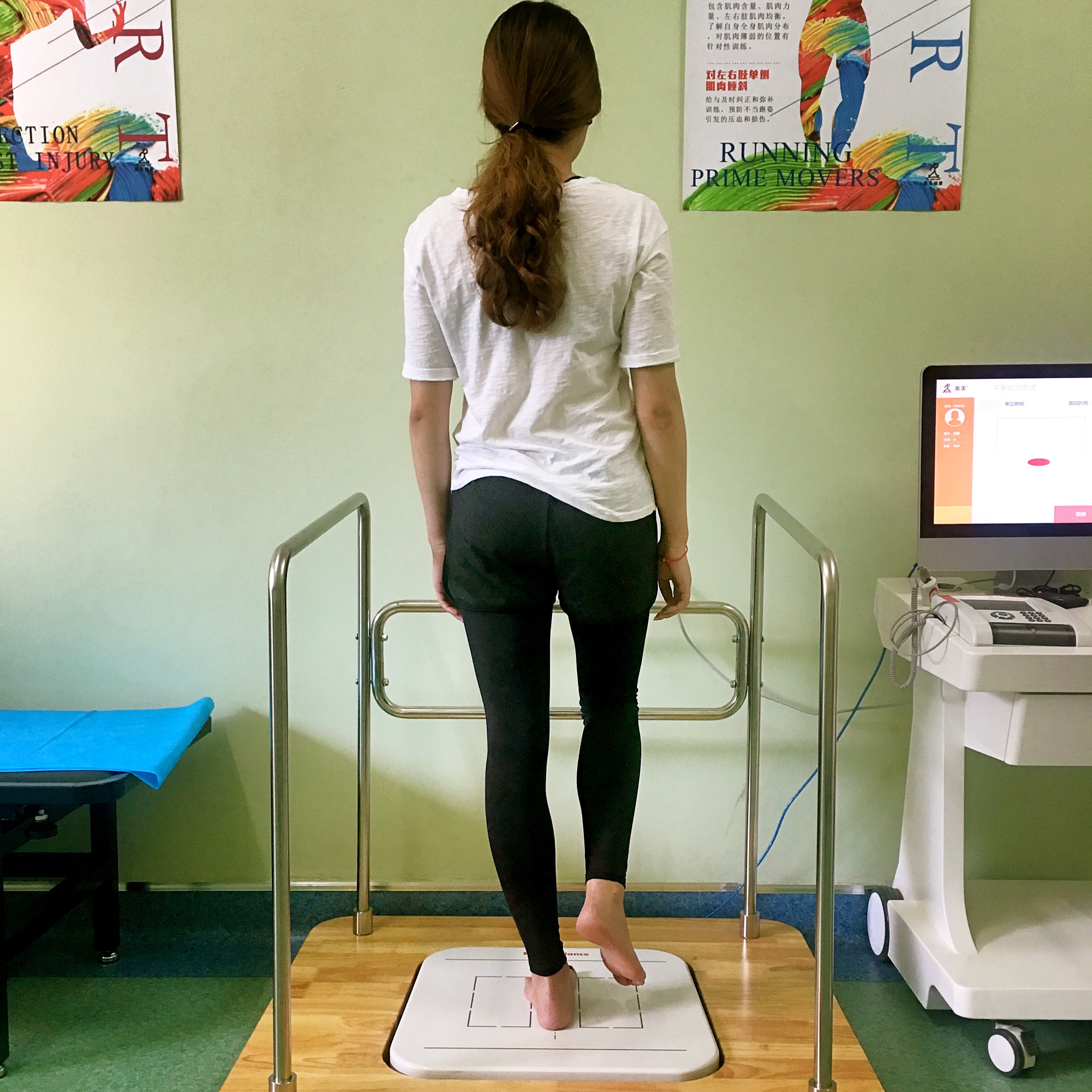 平衡适能测试:检测选手身体的运动风险和易摔倒的风险;检测选手视觉本体对身体平衡能力的影响;检测选手身体重心的偏向。