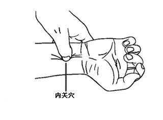操作方法:用左手的拇指尖按压右内关穴上,左手食指压在同侧外关上,按捏10~15分钟,每日2~3次;再用右手按压左侧的穴位,反复操作。用指尖有节奏地进行按压,以产生酸、麻、胀的感觉为最好。按揉时会如果感到一种莫名的刺激感沿着前臂内侧传至心脏,此为较好的刺激效果。