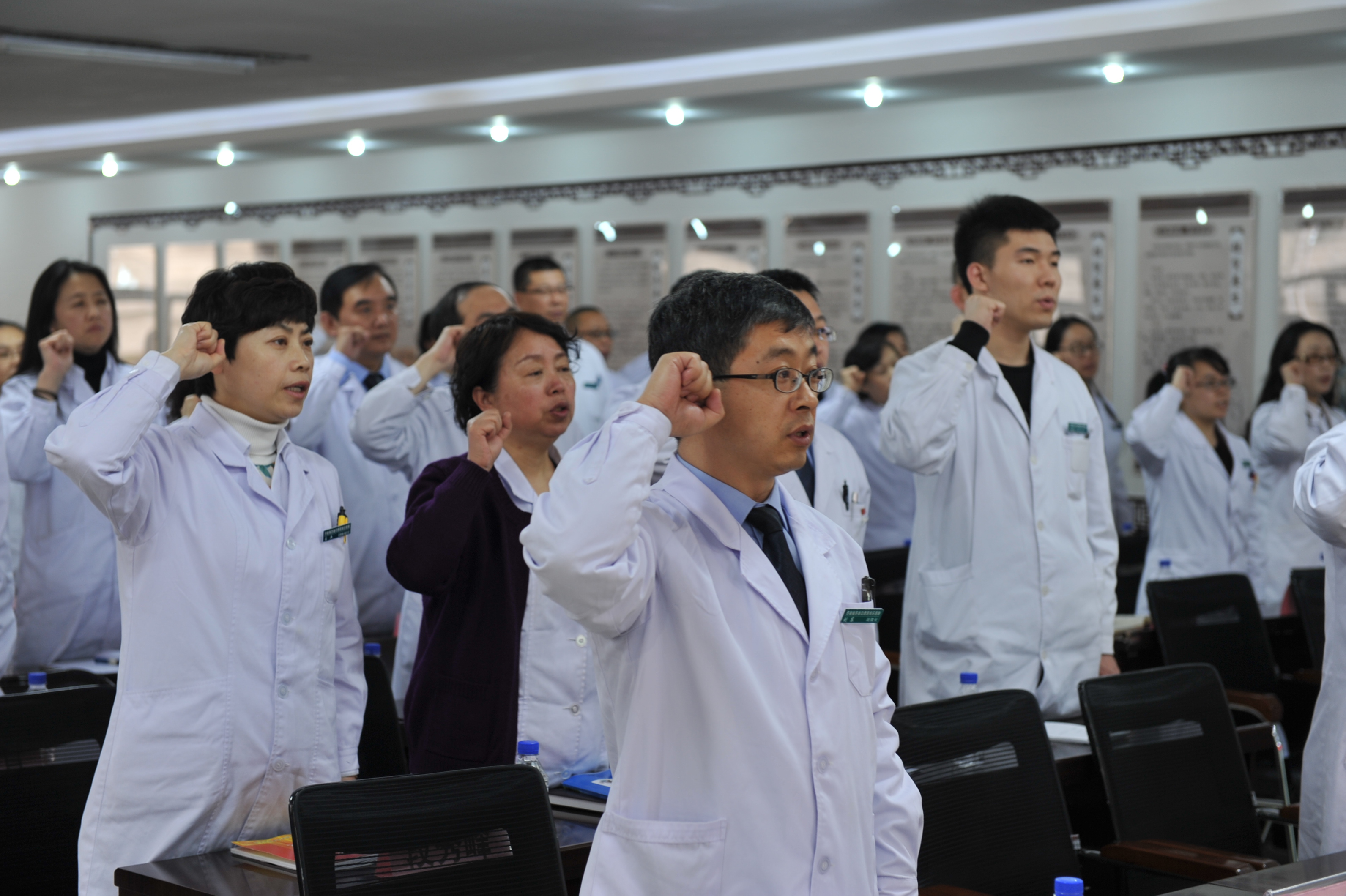 会上,由副院长刘东、微创骨科主任任杰和心血管内科护士长刘玉梅分别带领中医师和护士重温了孙思邈的《大医精诚》、《希波克拉底誓言》和《南丁格尔誓言》。全体人员郑重宣誓,每一个字、每一句话都铿锵有力,这不仅代表了救死扶伤的决定,更在每个人心上烙下了深深的烙印。