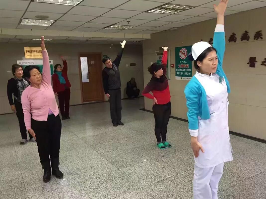 早在2015年6月份,在脑病科护士长的组织动员下,科室全体护士就开始轮流组织病人在住院处做主动操(站姿),每天下午20分钟左右,很多患者和家属都参与其中。这里尤其是以为姓韩的大爷让我们记忆犹新,他入院时左侧肢体有明显的活动障碍,左侧肢体上肢力4级,左下肢力4级,在接受治疗的同时,他坚持和我们一起做操(站姿主动操)来帮助肢体恢复。入院一周后后,韩大爷病情明显好转,肌力由入院时的4级已经恢复正常了。按理说,出院后患者自行在家继续做操锻炼就可以了,但是韩大爷出院后任坚持每天来医院与其他病人一起做操。后来在一次的聊天中无意发现,原来韩大爷的家里离医院挺远,每天要倒两次公交车,一个多小时才能到医院,为的就是和护士、病友们一起做操,我们听后都很感动。韩大爷说,他很感谢医院,感谢医生救了他,感谢科室有这样的特色服务,在他眼里这是医院对患者最好的福利,他说他要好好享受这样的福利。