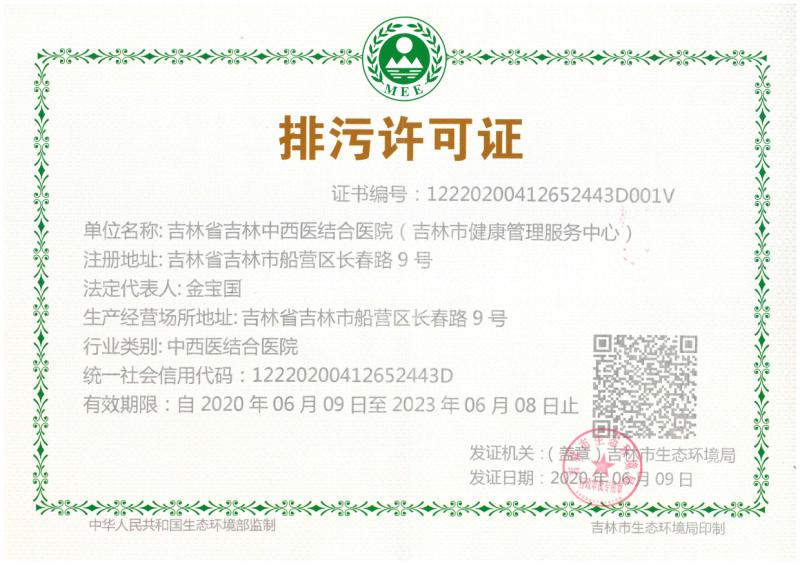 吉林省吉林中西医结合医院污染源自动监控设施登记备案表