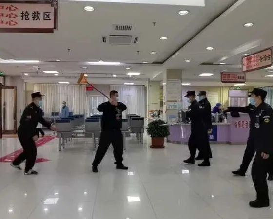 经过培训后安保人员在急诊大厅进行了实景演练,模拟当危险人物与值班大夫发生冲突时,安保人员手持安防盾牌将危险人物与医生隔开,将伤害等级降至最低,多名安保人员统一手持安防盾牌将危险人物包围,制止了危害的发生。本次演练旨在提高安保人员在面临医护人员及患者受到人身威胁时如何控制闹事者,保障医护人员及患者安全。