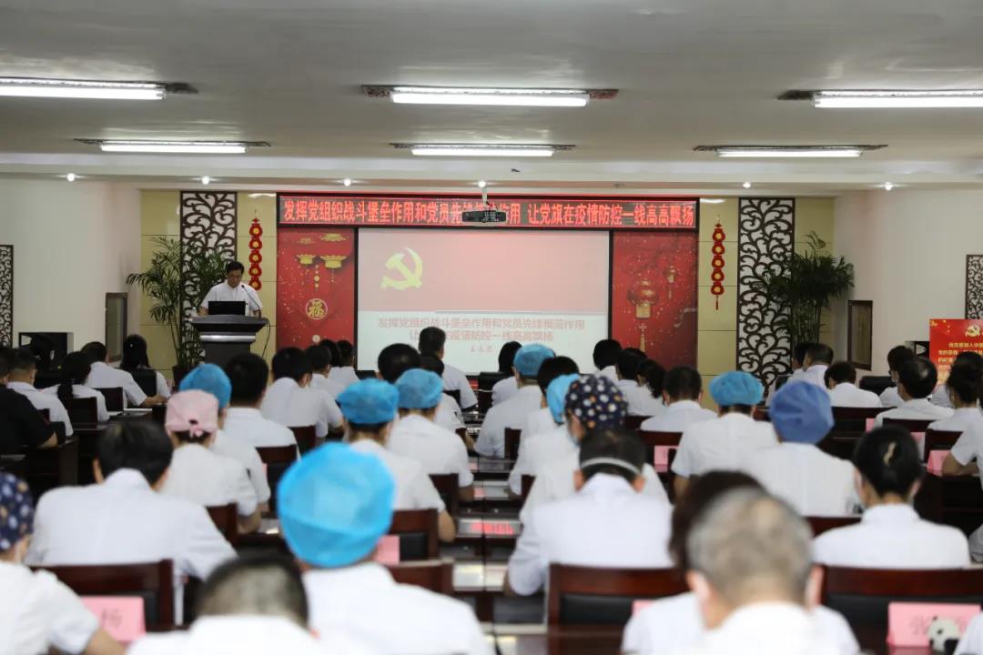 为深入学习贯彻习近平新时代中国特色社会主义思想,巩固拓展“不忘初心、牢记使命”主题教育成果,严格落实“三会一课”制度,根据吉林市委组织部下发的《关于开展“党课开讲啦”活动的通知》以及医院党委年度党建工作计划的要求,6月23日下午,吉林省吉林中西医结合医院党委组织召开专题党课。党委书记王长君以“发挥党组织战斗堡垒作用和党员先锋模范作用让党旗在疫情防控一线高高飘扬”为主题,为参会的近两百名医院党员干部职工奉献了一场生动、精彩、发人深省的党课,会议由党委副书记、院长金宝国主持。此次召开专题党课也是医院党委为庆祝中国共产党建党99周年组织的纪念活动中的一项重要内容。