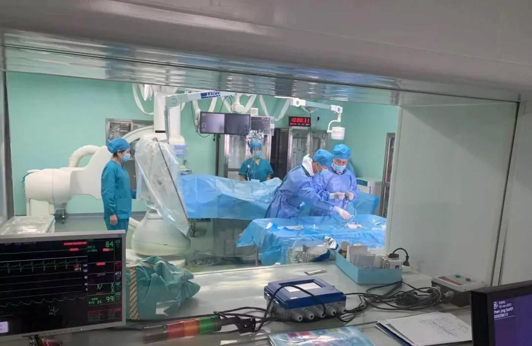 导管室内,医生们正在全神贯注的为患者做冠状动脉支架植入术