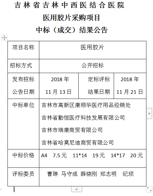 医用胶片采购项目中标公告