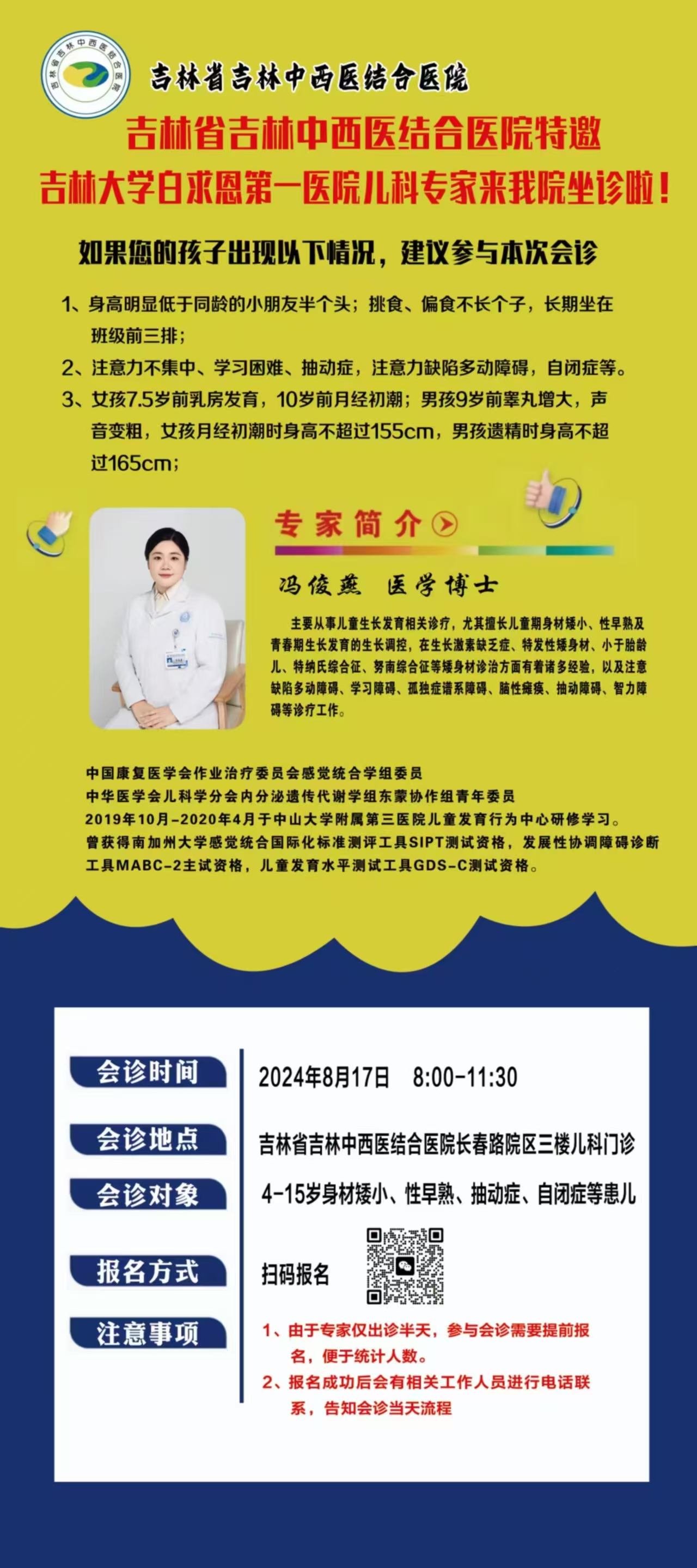 【关 注】吉林大学第一医院发育行为儿科专家来我院出诊