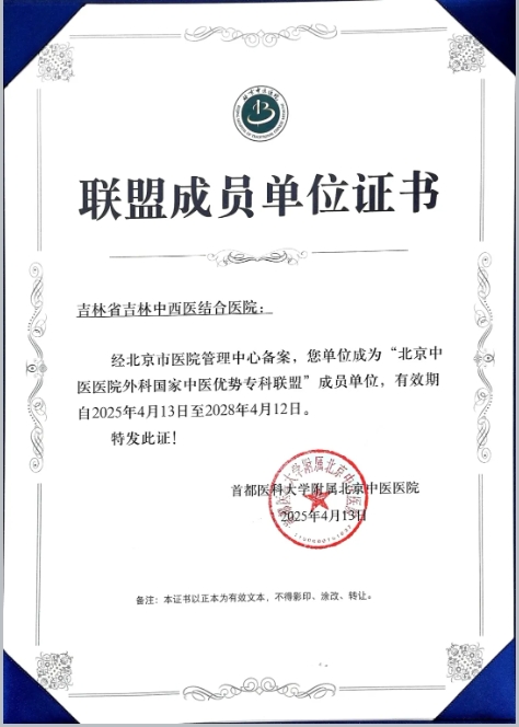 加入北京中医医院外科国家中医优势专科联盟,是吉林省吉林中西医结合医院发展历程中的重要里程碑。未来,医院将紧抓合作机遇,以中医特色为引领,以技术创新为驱动,持续提升外科综合实力,为推进健康中国建设贡献吉林力量!